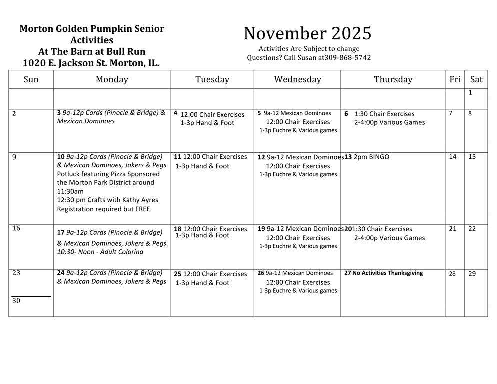 Senior Golden Pumpkin Calendar